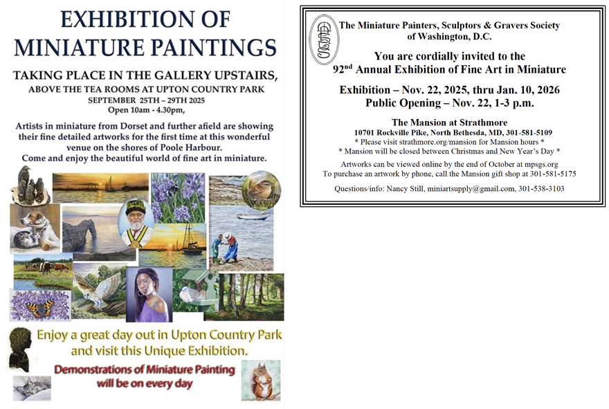 April update: I have been framing up my latest set of miniatures ready for the summer exhibitions - check out the flyers below for times and dates.